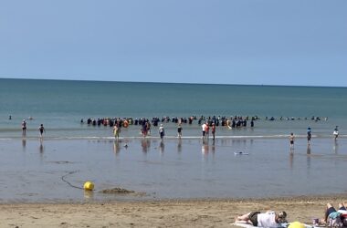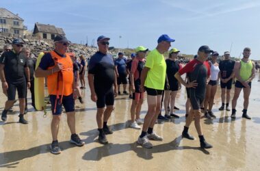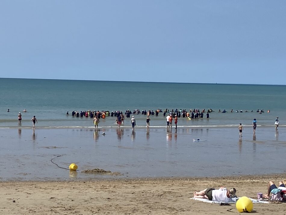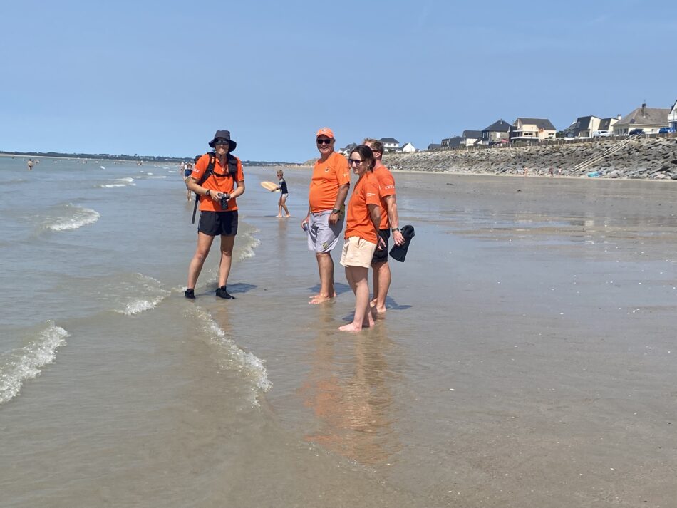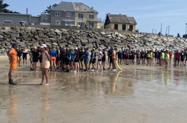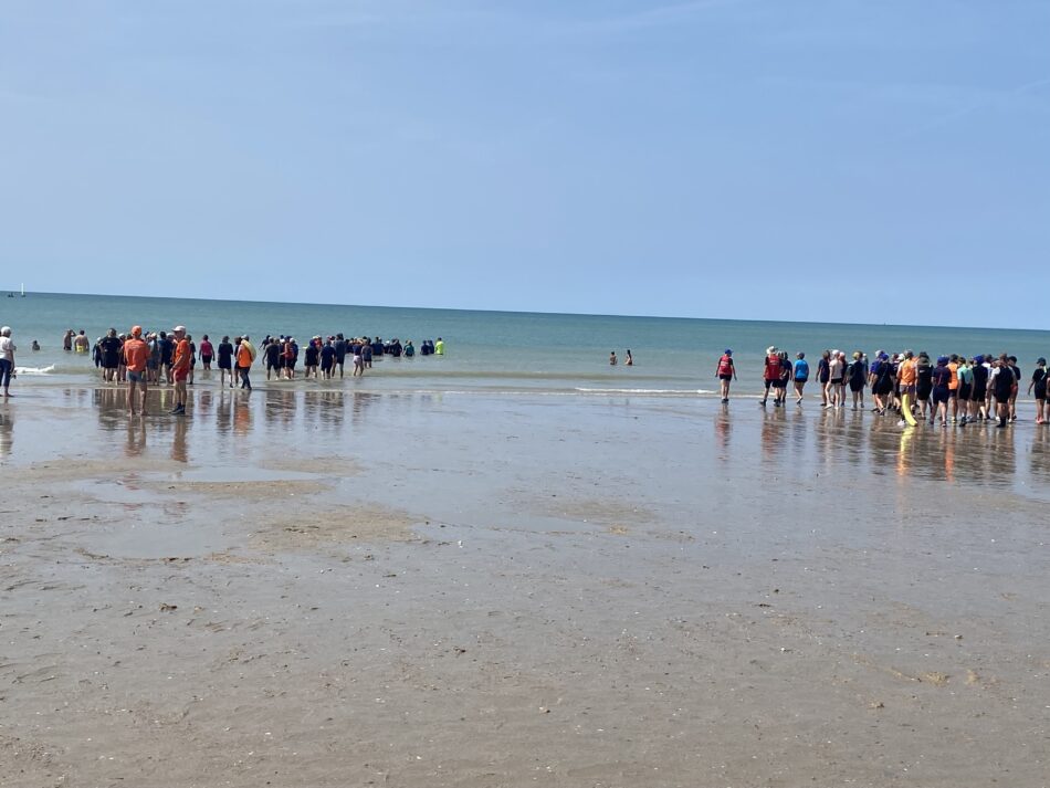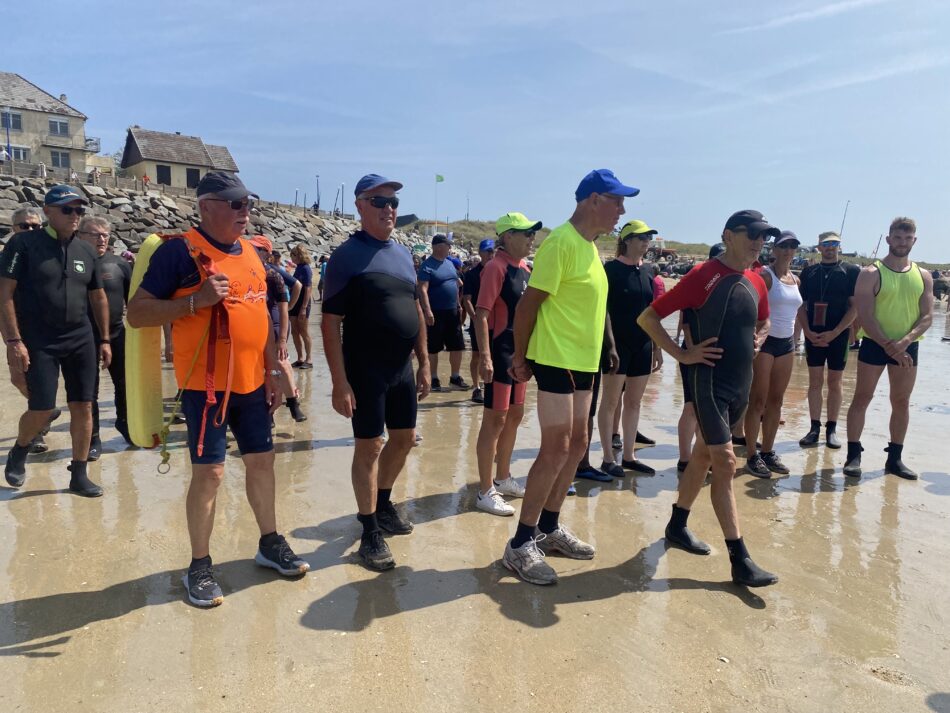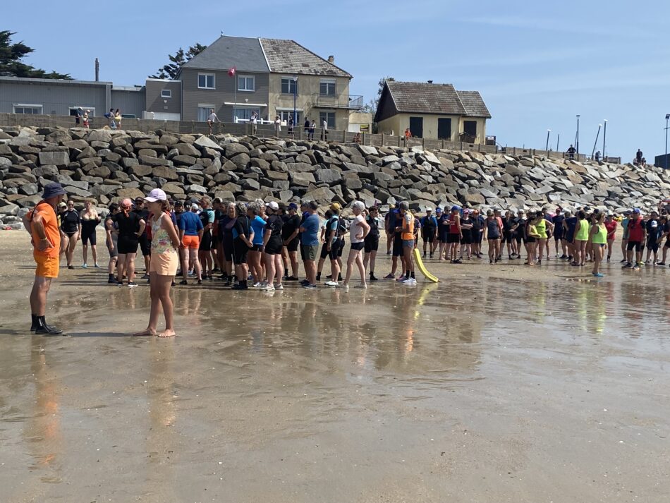 Vendredi 15 août 2025, à Hauteville sur mer, les gens sont venus nombreux à l’appel du longe côte Hautais pour se mettre à l’eau au profit de la SNSM. Sous le soleil, dans une mer belle et calme, 33 adhérents, 11 encadrants ont fait découvrir leur activité favorite aux 81 personnes venues découvrir le longe côte. A 14h30, après un petit échauffement, tous ont longé pendant une heure face à la digue et sous la surveillance des agents de la SNSM. Les 125 participants ont déboursé 7 euros auxquels s’ajoute la participation de l’association du longe côte Hautais (5 euros/ participant). Merci et bravo à tous les participants : cet évènement a permis de récolter une belle somme pour la SNSM!